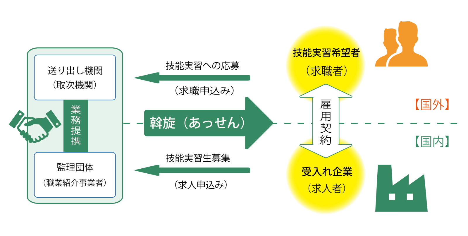 帰国後に母国の産業発展や地域づくりに活かしていくことを目的とした「人づくり」のための制度です。