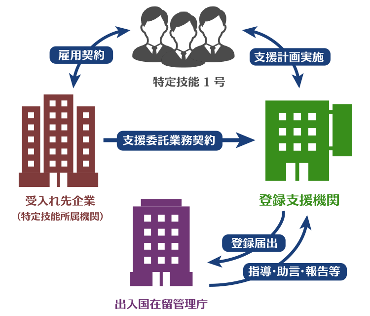 特定技能の在留資格に係る制度の運用に関する基本方針から、受入れ機関(特定技能所属機関)又は登録支援機関は、1号特定技能外国人への支援計画を策定・実施しなければなりません。